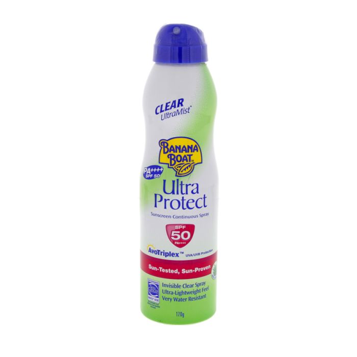 Banana Boat Ultra Protect Sunscreen Continuous Spray with Avotriplex technology goes on easily to provide UVA/UVB sunscreen protection from sunburn and damaging UV rays