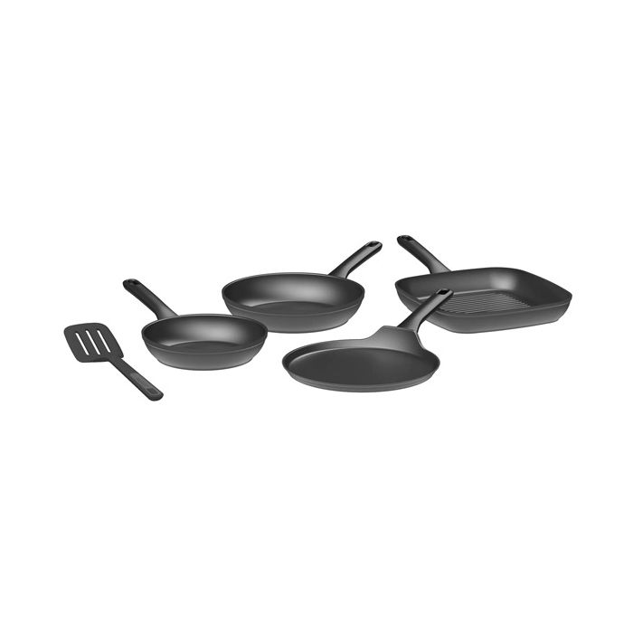 - Set: 1 x Frying pan non-stick 20,00 cm - 8" (1,00 L / 32oz) SKU 1315156, 1 x Frying pan non-stick 24,00 cm - 9.5" ( 1,60 L / 1.75qt) SKU 1315157, 1 x Grill pan non-stick Helix 26,00 x 26,00 cm - 10 x 10" (2,00 L / 2qt) SKU 1315092, 1 x Pancake pan non-stick 25,00 cm - 10" (0,65 L / 22oz), 1 x Slotted turner 34,85 x 8,34 x 3,45 cm - 14 x 3.5 x 1.5"
