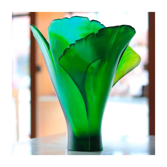 Daum | Crystal Medium Green Ginkgo Vase