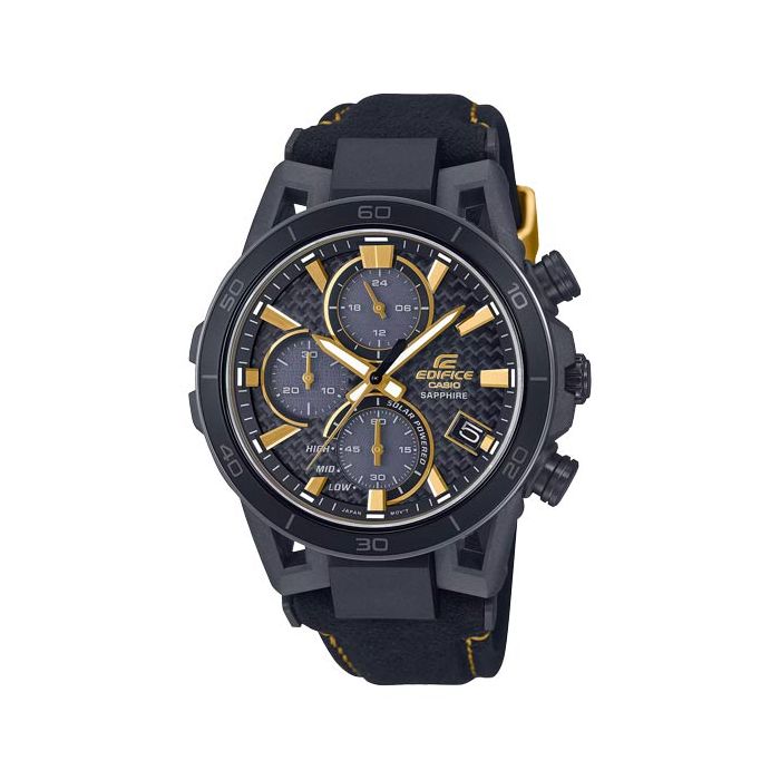 - This solar powered EDIFICE chronograph features: a black and gold color scheme that evokes the first flicker of light, that spark of innovative craftsmanship, where the creation of new value begins.