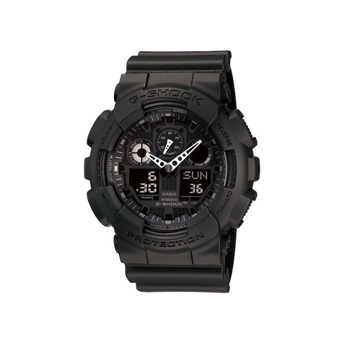 Introducing a collection of new G-SHOCK models whose 35mm diameter faces and large cases give them a look of power and strength. Dial rings and raised hour markers create three-dimensional depth that gives the face plenty of character. The popular G-SHOCK three-dial face design incorporates one analog dial in the center, with digital dials on either side. These watches are designed and engineered to deliver outstanding shock resistance and water resistance, as well as anti-magnetism. Over-sized buttons come with a checkered anti-slip surface to make operations fast and sure. 1/1000-second stopwatch, velocity indicator, World Time, 5 alarms and much more provides these models with unmatched function and performance.