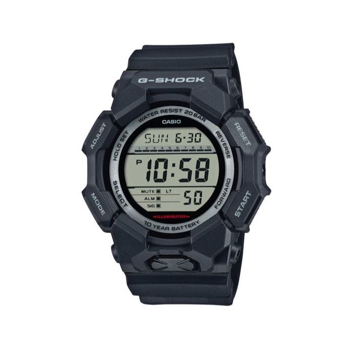 Enjoy a life of fewer battery changes with a large-case G-SHOCK with a 10-year battery you won’t have to worry about for ages. The analog-digital GA-010 delivers handy features like world time and stopwatch, as well as a high-brightness LED light, which can be easily accessed from the large button on front of the case, ensuring visibility even in the dark. Made with bio-based resin and equipped with a 10-year battery, this G-SHOCK is great if you want to reduce environmental impact. Available in a selection of black-based workstyle color schemes for a cool design that moves with ease from casual settings to work situations.
