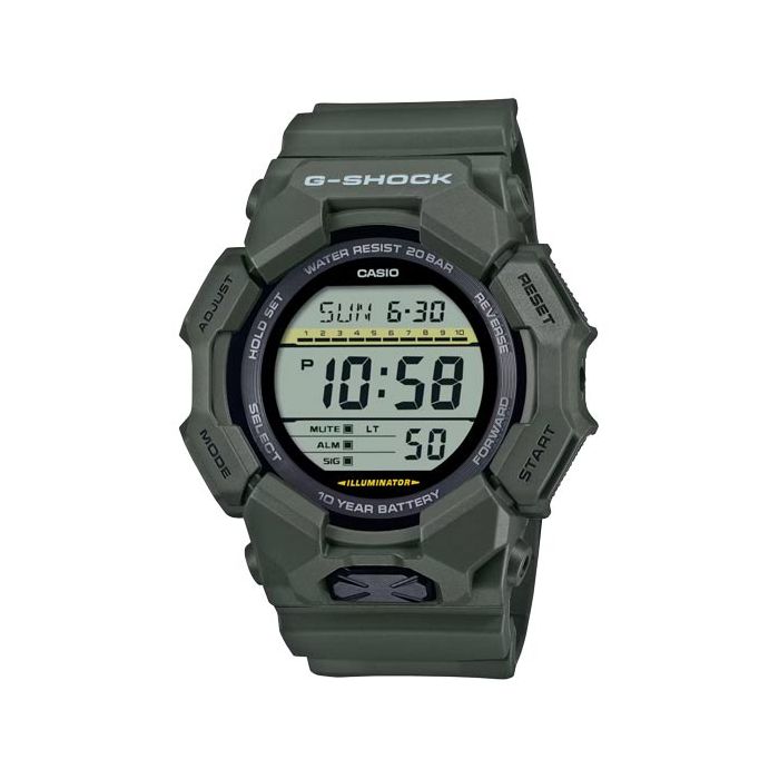 Enjoy a life of fewer battery changes with a large-case G-SHOCK with a 10-year battery you won’t have to worry about for ages. The analog-digital GA-010 delivers handy features like world time and stopwatch, as well as a high-brightness LED light, which can be easily accessed from the large button on front of the case, ensuring visibility even in the dark. Made with bio-based resin and equipped with a 10-year battery, this G-SHOCK is great if you want to reduce environmental impact. Available in a selection of black-based workstyle color schemes for a cool design that moves with ease from casual settings to work situations.