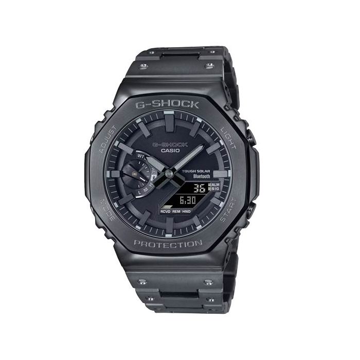 Luxe full-metal construction with a screw-back case, bezel, and band crafted in stainless steel creates a streamlined, minimalist design, while protecting the module from impact when dropped. We take it way back with the octagonal bezel and dimpled band design of the original from 1983, all done in metal.