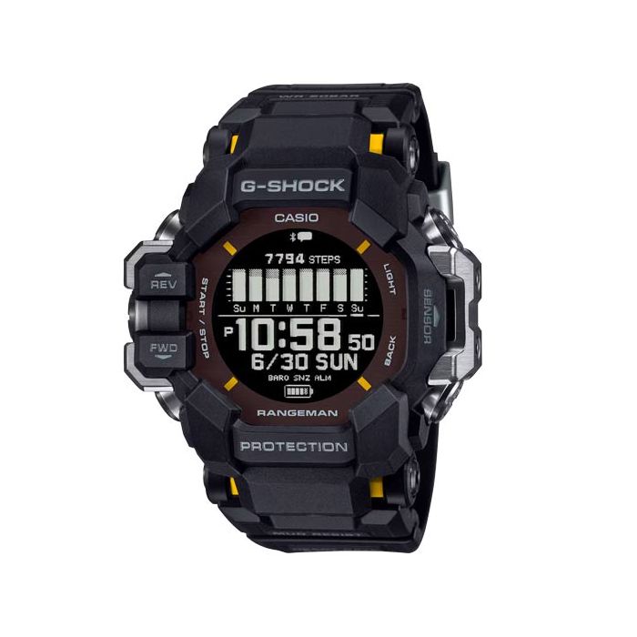 Designed to work even in the harshest environments, the RANGEMAN GPR-H1000 from the MASTER of G line is a truly tough piece of outdoor gear. With a mud-resistant structure to keep out fine dust and dirt, it is designed to withstand the most punishing conditions and the worst weather situations. This muscular timepiece is equipped with a heart rate monitor, built-in GPS functionality, and a high definition, high-contrast memory in pixel (MIP) LCD for an easy read. The case is guarded by sizable metal components on the left and right, protecting the GPS antenna and six sensors inside, to deliver what you need for a wide range of activities. The trekking function allows you to check your heart rate while on the move so you can keep track of your physical condition during workouts.