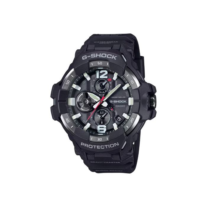 - Regular timekeeping: Analog: 3 hands (hour, minute (hand moves every 10 seconds), second), 3 dials (dual time hour and minute, dual time 24-hour, day)