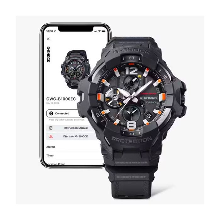Whatever you’re doing, wherever you are — the G-SHOCK Master of G line has your back. Based on GRAVITYMASTER, MUDMASTER, and MUDMAN models that deliver peak performance in punishing conditions in the air and on land, this line features a black watch case symbolizing toughness, with accents in vivid emergency colors that capture the world of professionals involved in rescue efforts and other critical missions. The organic form of the GRAVITYMASTER GR-B300EC is inspired by next-generation aircraft and rendered with a seamless exterior design. The Carbon Core Guard structure and wide 3D face deliver durability, readability, and a comfortable fit. Enjoy all the practical functions as well, including dual-time simultaneously showing the time in two cities, a flight log memory function for recording routes traveled, and more.