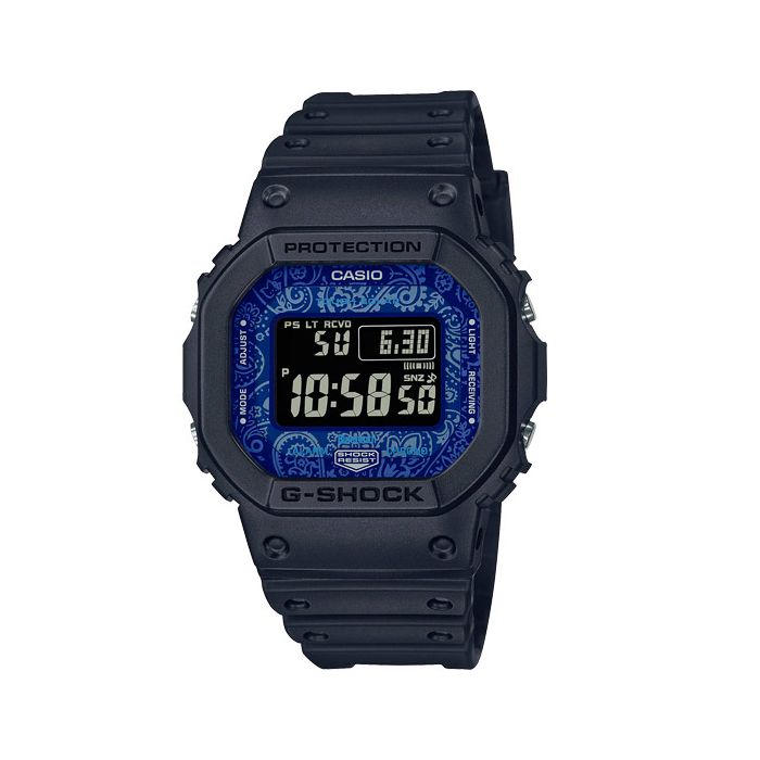 Absolutely tough, boldly blue, paisley patterned — the G-SHOCK with a touch of rugged sophistication. In a striking blue and black color scheme, the Paisley Blue series features dials printed with the iconic pattern popularized by the practical stylishness of the bandana.
