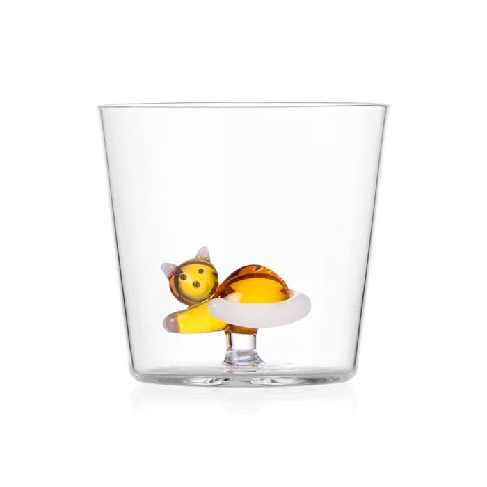 The collection is made of handmade and lampworked borosilicate glass - Products dishwasher safe at low temperatures (40 °C/104 °F recommended)- Alimentary use.