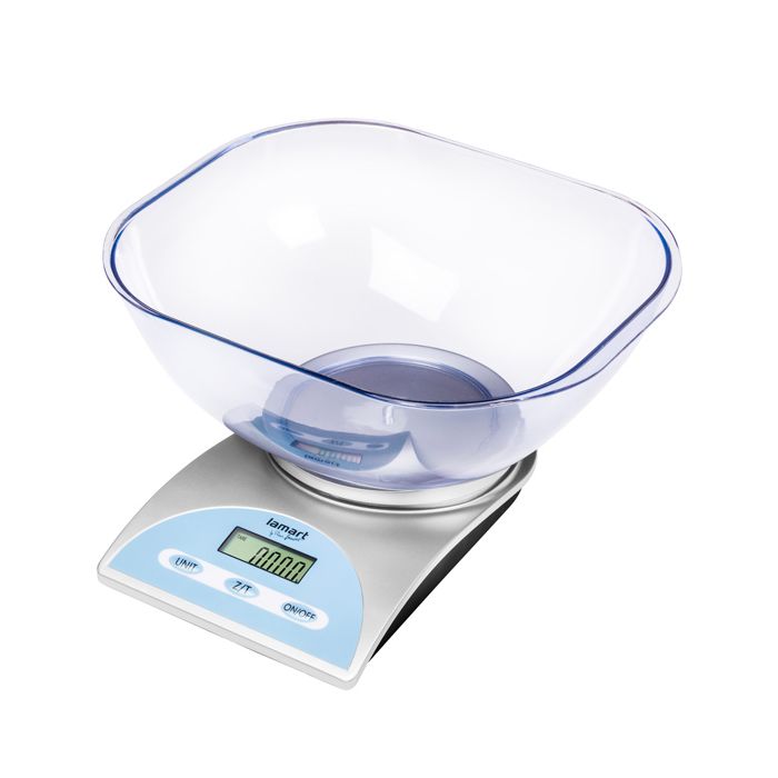 Kitchen Scale With Touch Control Sensors For Accurate Weighing With A Large Lcd Display And Deep Bowl.