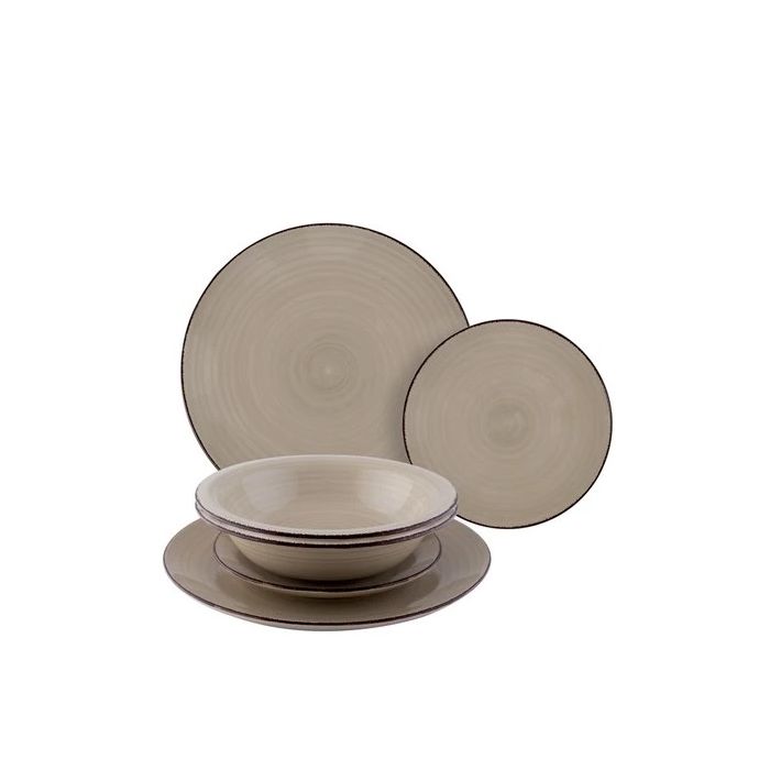 Ceramic series of tableware for everyday use. Dinner plate set includes 2x shallow plate, 2x deep plate and 2x dessert plate. Easy maintenance and cleaning