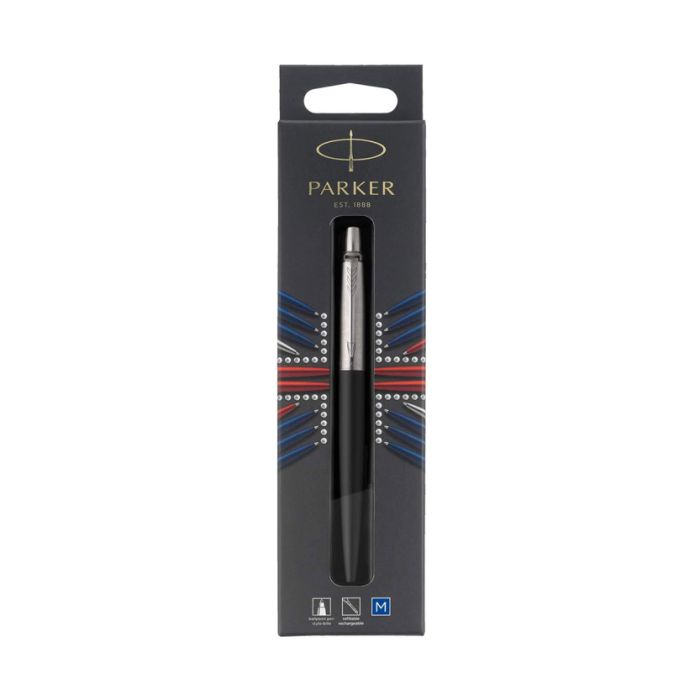 Expertly crafted iconic stainless steel body, complimented by a high-shine stainless steel arrowhead clip Parker Jotter Bond Street Black Chrome Colour Trim Ballpoint is instantly noticed, Jotter stands as an authentic design icon of the last 60 years. With covetable colours and a distinctive shape is suitable for all occasions as a Christmas gift or birthdays. This Jotter Ballpoint Pen is ideal for laser engraving and thats why it's best suited for companies who wants to give some Parker presents for for employees or partners. Jotter remains Parker's most popular pen, recognizable down to its signature click. This Parker Ballpoint Pen can be refilled with every Parker ballpoint refill. On our website you can also get Parker Jotter Bond Street Black Chrome Colour Trim Mechanical Pencil matching to the set. Packaged in a premium gift box or hangsell. This Ballpoint Pen comes with one Ballpoint refill in random colour blue or black.
